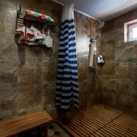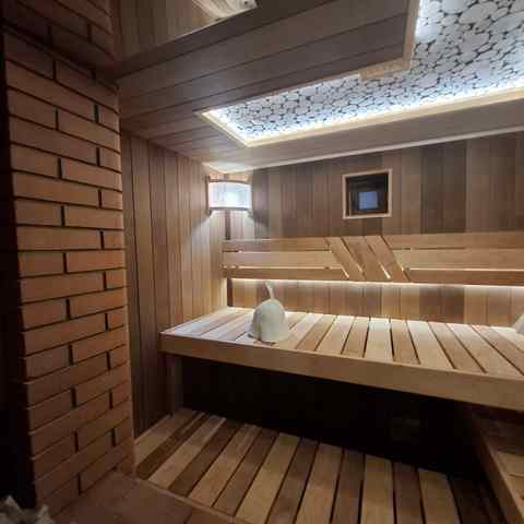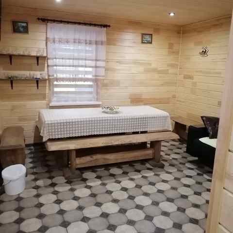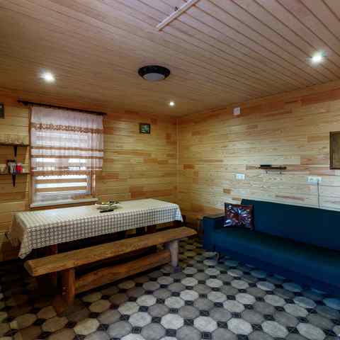 Вниманию гостей — настоящая русская баня на дровах с горячим паром, ароматными вениками и летним бассейном. Общая вместимость — до 12 человек. Предусмотрены бесплатные полотенца, шапочки. В уютной комнате отдыха созданы все условия для комфортного отдыха после парной: душевая, санузел, большой стол, мягкая мебель, столовая посуда, чайник, чай/кофе, а также TV и настольные игры.