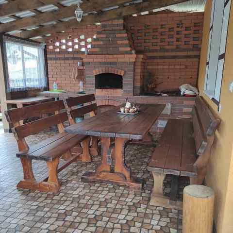 Отдохнуть можно как в самой бане «У Елочек» (посидеть у камина, посмотреть телевизор, поиграть в настольные игры), так и на просторной летней террасе, которая обустроена мангальной зоной для приготовления сочного барбекю на свежем воздухе. Можно воспользоваться лежаками или летними качелями, что позволит насладиться тишиной окружающей природы.