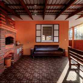 Отдохнуть можно как в самой бане «У Елочек» (посидеть у камина, посмотреть телевизор, поиграть в настольные игры), так и на просторной летней террасе, которая обустроена мангальной зоной для приготовления сочного барбекю на свежем воздухе. Можно воспользоваться лежаками или летними качелями, что позволит насладиться тишиной окружающей природы.