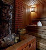 Вниманию гостей — настоящая русская баня на дровах с горячим паром, ароматными вениками и летним бассейном. Общая вместимость — до 12 человек. Предусмотрены бесплатные полотенца, шапочки. В уютной комнате отдыха созданы все условия для комфортного отдыха после парной: душевая, санузел, большой стол, мягкая мебель, столовая посуда, чайник, чай/кофе, а также TV и настольные игры.